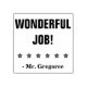 Ce design de timbre en caoutchouc positif comporte le message positif "WONDERFUL JOB!" et le nom d'un enseignant, d'un éducateur ou d'un tuteur sur mesure. Il présente également des contours décoratifs en étoile. Il pourrait être utilisé par un enseignant, un éducateur ou un tuteur pour marquer les affectations, pour indiquer qu'un étudiant a bien fait.
