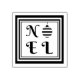 Tampon de Noël avec une empreinte NOEL amusante et un bauble rayé de Noël dans un carré rayé.