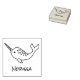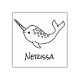 Un joli narval de dessin animé avec une corne et des taches. Le timbre peut être personnalisé avec un nom personnalisé.