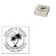 Un thème de voyage destination plage mariage personnalisé passeport tampon en caoutchouc avec un palmier au milieu et la chambre pour les noms, la date et la destination. REMARQUE : Cliquez sur "customiser plus loin" pour effectuer des réglages de taille ou de placement de police.