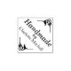 Ce timbre personnalisé présente des bordures décoratives fantaisistes dans les coins supérieur droit et inférieur, car le timbre est imprimé en forme de losange plutôt qu'en carré. Le centre du timbre comporte le mot "fait main" imprimé dans une police élégante, suivi d'un nom d'exemple. Le nom sur le timbre peut être personnalisé pour inclure votre propre nom, nom d'entreprise ou de société, ou tout autre message ou devis personnalisé.