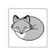 Dessin à encre stylisée d'un renard dormant recouvert d'un caillou.
