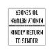 Ce design en caoutchouc clair comporte le message "RETOUR À L'ENVOI". Il pourrait être utilisé pour indiquer que le courrier reçu a été livré à la mauvaise adresse et devrait être retourné à l'expéditeur.