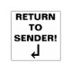 Cette conception d'estampille en caoutchouc de base comporte le message "RETOURNER À SENDER!", ainsi qu'un symbole de flèche. Il pourrait être utilisé pour indiquer que le courrier reçu a été livré à la mauvaise adresse ou que le destinataire est inconnu, et devrait être retourné à l'expéditeur.