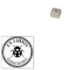 Un design en caoutchouc Ex Libris rond avec un cadre pointillé et pointillé audacieux avec un motif en coccinelle.