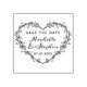 Ce mignon enregistrer le timbre date est la meilleure façon d'annoncer votre grand jour! Parfait pour tout couple qui va se marier à la recherche d'une touche personnelle à ses lettres "enregistrer la date". Une jolie feuille botanique en forme de coeur entoure une police moderne pour "Save the Date" et la date, avec les noms du couple dans un élégant script de style écrit à la main.