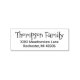 La conception en caoutchouc comprend une police de script de style curlyQ pour le nom et un texte d'adresse de retour simple à lire et facile à personnaliser.
