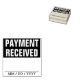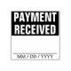 Cette conception simple et en caoutchouc comprend les messages "PAIEMENT REÇU" et une ligne où une date de paiement peut être écrite. On pourrait peut-être l'utiliser pour indiquer qu'une facture ou une facture a été entièrement payée.