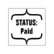 Cette simple estampille en caoutchouc présente le message "STATUS : Paid". On pourrait peut-être l'utiliser pour indiquer qu'une facture ou une facture a été payée en entier.