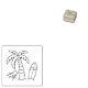 Illustration simple d'un palmier, d'une planche de surf et d'un transat.