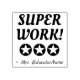 Ce design inspirant de timbres en caoutchouc comporte le message encourageant "SUPER TRAVAIL !" et le nom d'un enseignant ou d'un éducateur personnalisé. Il est également décoré en étoile. Il pourrait être utilisé par un enseignant, un éducateur, un instructeur ou un tuteur pour marquer les affectations, pour indiquer que l'étudiant a fait un excellent travail.