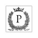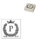Timbre en caoutchouc élégant avec Monogramme vintage Lettre initiale P, couronne et couronne. Différentes tailles et modifications, personnalisation sont disponibles. Impression graphique ancienne, clipart de dessin rétro, vieille image pour l'art mail, scrapbooking, étiquette, autocollant etc