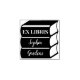 Un Ex libris design avec une pile de trois motifs de livres. Ex Libris sur le livre le plus haut avec des prénoms et des noms personnalisables sur les volumes inférieurs dans une police de script stylisée. La conception peut également être customisée, par exemple pour accommoder des noms plus longs, etc.
