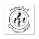 Cercle, ressemblant à un trou de port, encercle quatre hippocampes au centre, un grand en haut et trois plus petits en dessous.Top texte "Home Port" et le texte inférieur "Los Angeles, California" peuvent être personnalisés. Tout le design dans un bleu foncé.