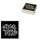 Ce timbre est en bois et présente une empreinte graphique Halloween Trick ou Treat. Customisez cet objet ou achetez tel quel. Image stock
