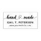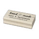 Timbre en caoutchouc pour votre petite entreprise vendant des produits faits à la main avec fait à la main écrit dans un script de calligraphie où les coeurs entrelacés séparent les mots pour indiquer qu'il est fait à la main avec amour. Ajoutez votre nom ou nom commercial et votre site Web.