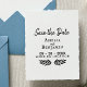 Typographie rustique Mariage personnalisé Enregistrer le timbre de date. Créez votre propre rustique enregistrer le timbre de date avec les feuilles plante. Le design a Enregistrer le texte de la date dans la typographie tendance, les noms de mariée et de mariée, la date mariage et l'emplacement du mariage. Personnalisez le timbre avec vos données.