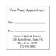 Ce timbre indique "Votre prochaine nomination" en haut. Il y a aussi des lignes pour la date et l'heure du rendez-vous. Le bas contient le texte d'affichage que vous pouvez modifier pour le nom de la pratique médicale, l'adresse et le numéro de téléphone. Tout le texte peut être modifié ou supprimé.