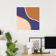 Tan and Blue Minimalist Swirl Shapes and Edges Poster