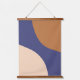 A minimalist design of curvy organic shapes in tan, blue and beige.