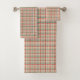 A lovely country plaid bath towel set in tan and red with a very masculine look. The neutral colours ensure it will fit into any colour scheme.