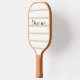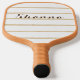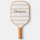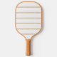 A simple neutral tan and white stripe pickleball paddle that can be personalized..