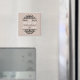 It was a bit smaller than expected, but I was too excited to check dimensions. The product itself send well printed though the grey text is a bit paint. Magnet worked perfectly on my fridge.