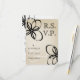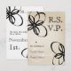 Wedding RSVP cards (Chubby Business Cards) with a black and tan colour scheme. Black flower illustrations at top left and bottom right corners. Black text. Matching invitations at Jill's Paperie.