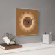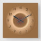 An atmospheric clock in tan /brown with a gold circle ring effect at the centre . This simplistic and striking design features deep brown numerals which enhance the overall image. Available in square and round shapes. Suitable for matching home decor or gift for a golden wedding anniversary celebration.