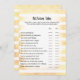 Enjoy playing this Old Wives Tales baby shower game on soft, yellow and white watercolor stripes background. Cute, tan, bunny rabbit on back with templates created for you.