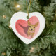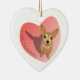 Tan Chihuahua in diamond pink collar in heart Ceramic Ornament