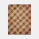 A warm and cozy fleece blanket with a plaid design of rust, tan, and clay.