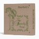 Ce classeur fait un grand cadeau pour les passionnés de généalogie ! Arrière - plan texturé clair avec un arbre vert et "Notre arbre généalogique" entouré de feuilles verts. Personnalisez avec un nom de famille sur le devant, le dos et la colonne vertébrale. Organisez votre histoire familiale !