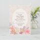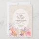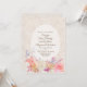 Elegant wedding invitation done in a tan and ivory faux textured, flourish damask background. A white semi transparent oval text area is decorated with colourful iridescent flowers, along the bottom. Personalize all the text for your special day. Matching products are available.
