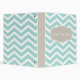 Turquoise and white chevron zig zag pattern with tan brown text plate and spine. Customise with your own words or name.