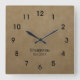 Personalize this modern neutral wall clock design with your own text. Acrylic wall clock is printed in a tan stucco look pattern that can fit into any modern colour scheme and is available in your choice or round or square faces.