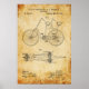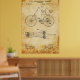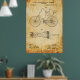 An old invention of a Tandem Bicycle patented in 1890 designed for wall art on a rustic vintage style background.