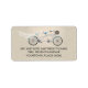Bicycle weddings are a fun, new trend in themed weddings. On this faux linen background address label a tandem bicycle symbolizes the married couple-to-be. The bride's seat has a wedding veil on it. The groom's has an untied bow tie wrapped around the handlebars with the bridal bouquet in the bike's basket. The couple's name and return address print below. Perfect for a bicycle themed or any outdoor wedding. Available in alternate colours with a tandem bike option.