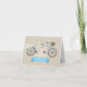 Bicycle-themed weddings are a fun trend in themed weddings. On this faux linen background wedding thank you card, a tandem bicycle symbolizes the married couple-to-be riding off together. The bride's seat has a wedding veil wrapped around it and the groom's seat has an untied bow tie wrapped around the handlebars. A bridal bouquet is placed in the bike's basket. A thank you message stands out in a sky blue banner underneath the bike. A customized message prints inside. This message can also be deleted in order to leave the interior blank for you to handwrite your own personal message. Available with matching products with a option for bride's and groom's bike.