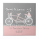 Fun wedding design featuring a flower covered tandem bicycle. A three tier wedding cake is on the back bumper and two love birds with hearts complete the theme. Customize it with your own personalized text. Cute gift for weddings or anniversaries. PinkInkArt original!