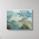 Cette toile enveloppée de 14 po x 11 po, 1,5 po, simple "As Eagles Soar" présente des images numériques de nuages d'un point de vue montagnard, ainsi qu'une Écriture d'Isaïe 40:31a imprimée sur son visage.