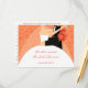 Trendy Bride to be advice cards, with a cartoon of a bride and groom on a tangerine tango swirl background. Bridal shower advice cards are a fun and personal way for guests to give their advice for happy marriage! The bride will cherish these words of wisdom for years to come!