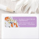 Elegant and chic return address label with beautiful tangerine wreath. Floral botanical illustration with spring delicate flowers, blooming branches and citrus. Orange, pastel and lilac colours. Personalise with your names and address.