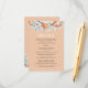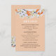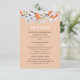 Elegant and chic wedding enclosure card with beautiful blooming tangerine branches. Floral botanical card with spring delicate flowers and citrus on pastel orange background. Personalise with your text.