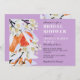 Elegant and chic bridal shower invitation with beautiful blooming tangerine branches. Floral botanical card with spring delicate flowers and citrus. Orange, pastel and lilac colours. Personalise with your names, date and venue address.