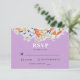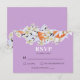 Elegant and chic wedding RSVP card with beautiful blooming tangerine branches. Floral botanical card with spring delicate flowers and citrus. Orange, pastel and lilac colours. Personalise with your text.