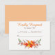 This is a bright and colourful floral wedding RSVP that matches invitations of the same title in our store. It features a pretty floral bouquet in colours of tangerine orange, red, brown and green at the bottom front. Above the image is your custom text in tangerine and brown. The image and text are placed on a white background. The back of the card is soft muted tangerine. Perfect for late summer or autumn events.