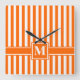 Tangerine Modern Stripe with Monogram Square Wall Clock