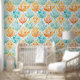 Tangerine Turquoise Abstract Flowers Wallpaper