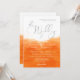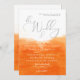Check out these modern tangerine -coloured wedding invitations. These invitations feature a vivid orange watercolor background. Personalize this invite with your wedding events venue and dates. The bride and grooms name is featured in an elegant script font. The phrase ' the wedding of' is featured on the top of the invitation in in grey.